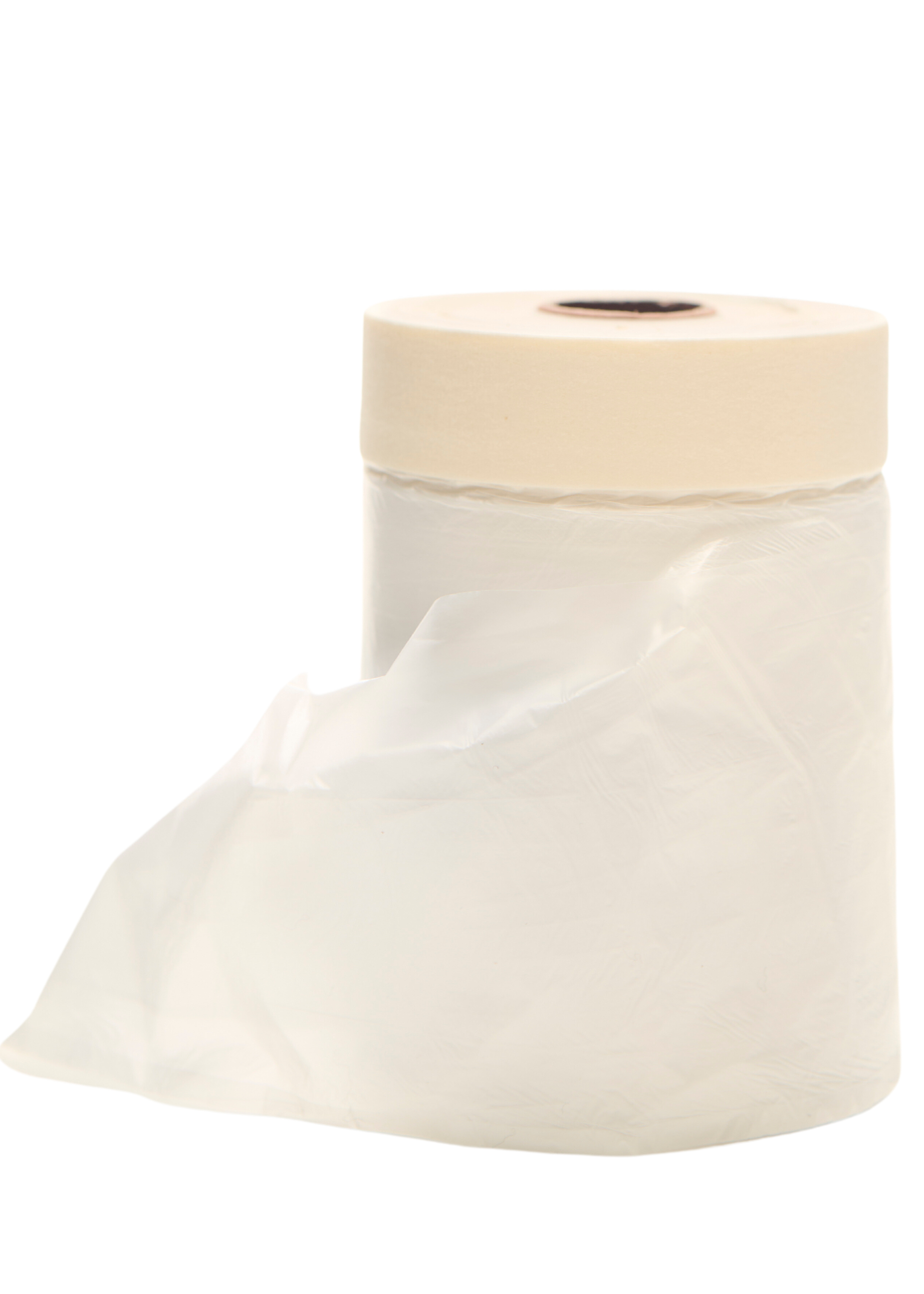 Smart combination of masking tape and masking foil. The quick and easy way to cover items near what needs to be painted. The foil protects the covered areas.