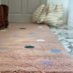 Vores prikkede tæppe er inspireret af farverne Peach, Almueblå, Skov, Syren og Hvid Morbær.