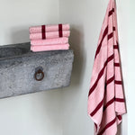 Vi anbefaler, at håndklæderne vaskes inden brug for optimal blødhed. Skulle der opstå et trådudtræk, så klip det forsigtigt af – undlad at trække i det.