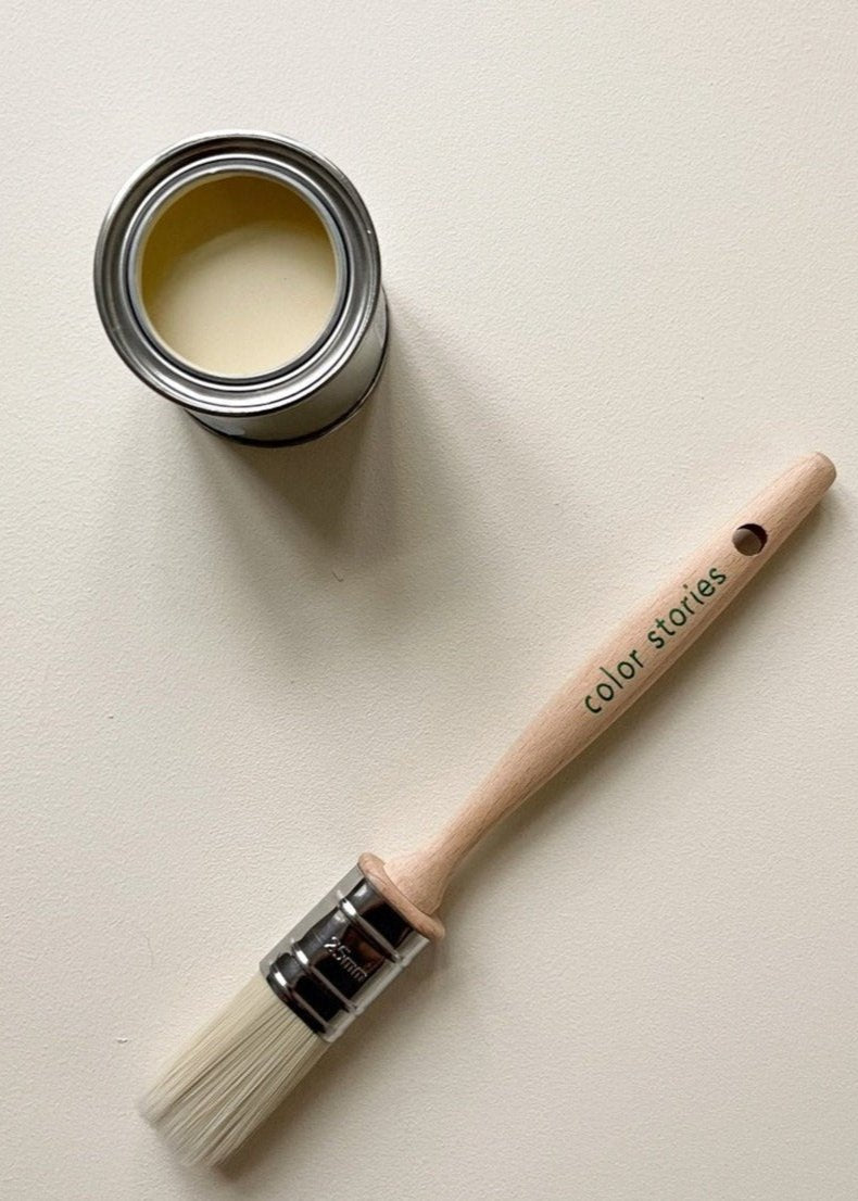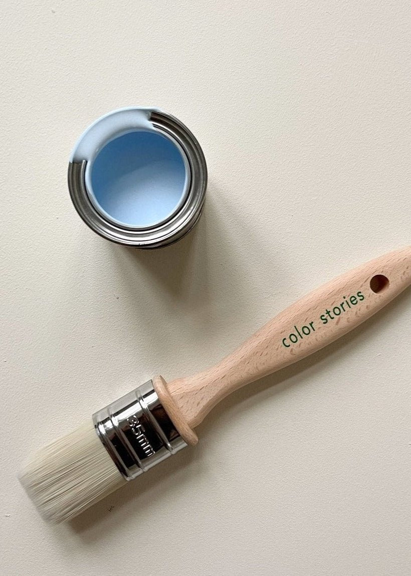 Kvalitetspensel fra Color Stories i ulakeret bøgeskaft med syntetiske børster på 35 mm.
